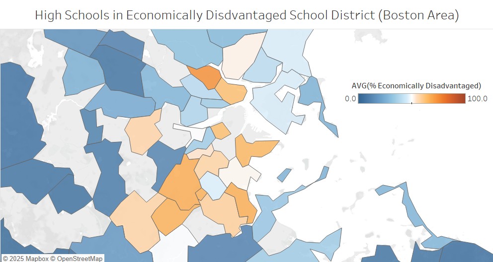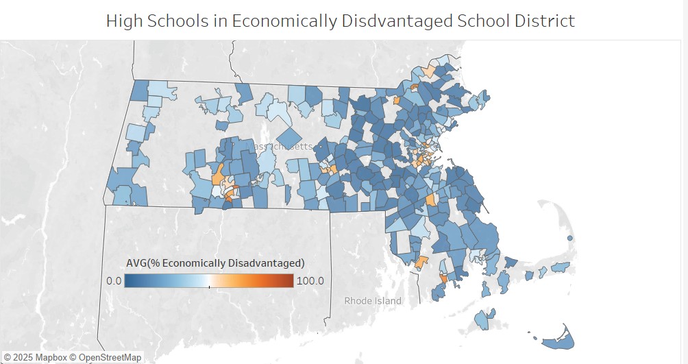 (These visualizations were created to assist the Massachusetts Department of Elementary and Secondary Education (DESE) in determining the most effective locations for pilot programs and the sharing of best practices with other districts.)